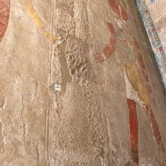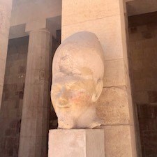 One of the temples I was very excited to visit was that of Hatshepsut’s temple at Deir el-Bohri. Hatshepsut (1479-1458 BCE) was not content with being a co-regent with her infant stepson Thutmose III, she had in mind something different. In the second year of the co-regent reign, Hatshepsut named herself Pharaoh and donned the Pharaoh’s beard. She had herself depicted as a male pharaoh in traditional clothing and in the same postures. However, she never changed her face, still appearing very feminine and pleasant looking.